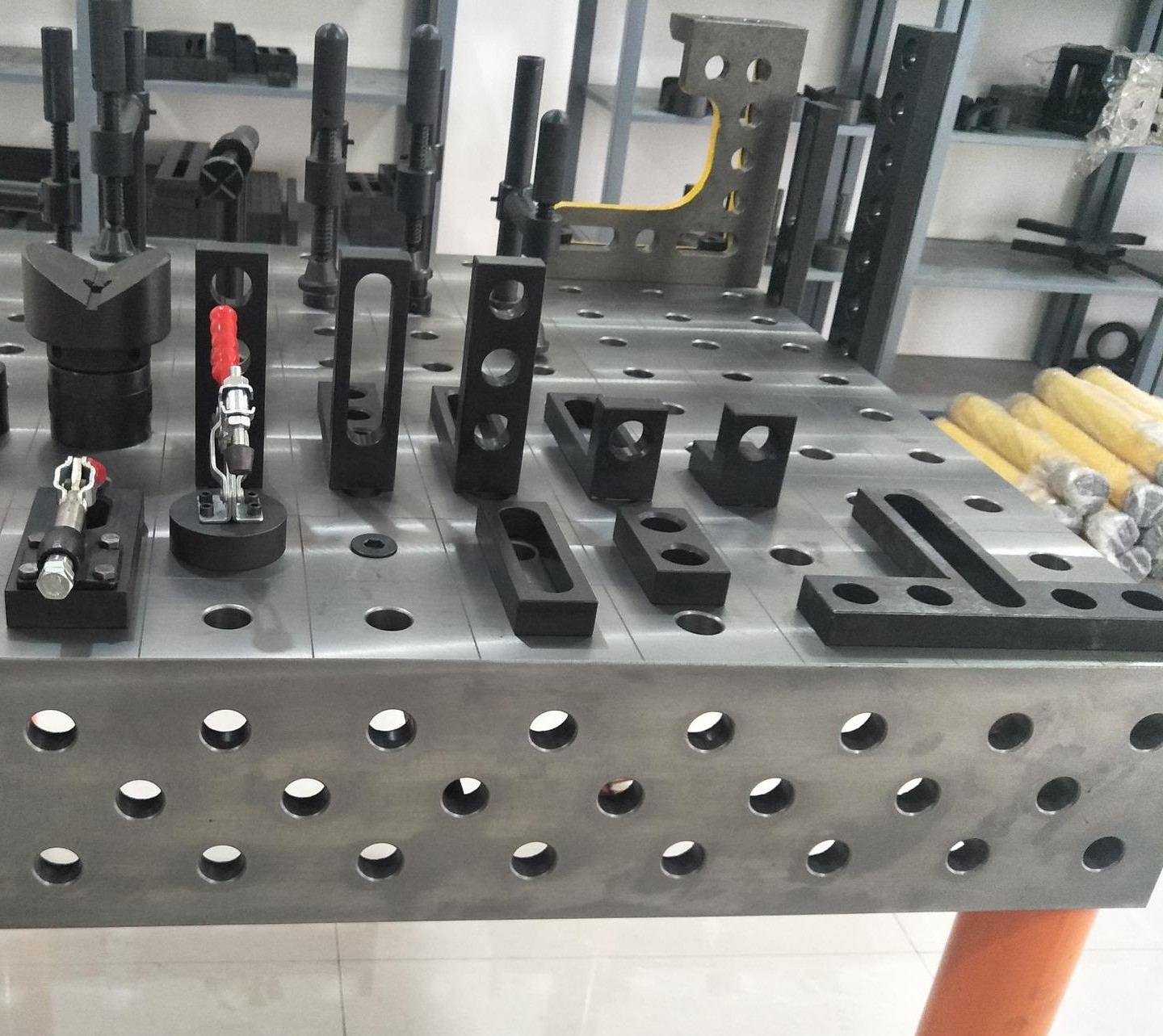 3、 多元性:柔性三維組合焊接平臺再2噸左右1M2集中載荷的作用下,其變形量不超過0.50mm,而再均布載荷作用下,其變形量只有 0.024mm,可以滿足絕大多數的焊接及裝配加工的需要,其組建工作平臺定位孔中心公差在0.05mm以內。這種將會反映在用戶所加工的產品中,因此工作臺也可用作檢具的基準平臺。