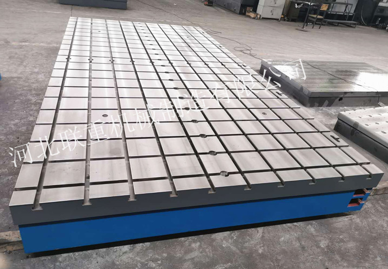 鑄鐵平板按JB/T7974-99標準制造,材料為HT200-300,QT400-600,采用刮研工藝,工作面上可加工V形、T形、U形槽、燕尾槽、圓孔、長孔等。鑄鐵平臺安裝應調至水平、負荷均勻分布于各支點上,環境溫度(20±5°)在臺面上檢測工件要輕放輕挪,不要集中使用一個區域,盡量均勻使用整個鑄鐵平臺的面積。